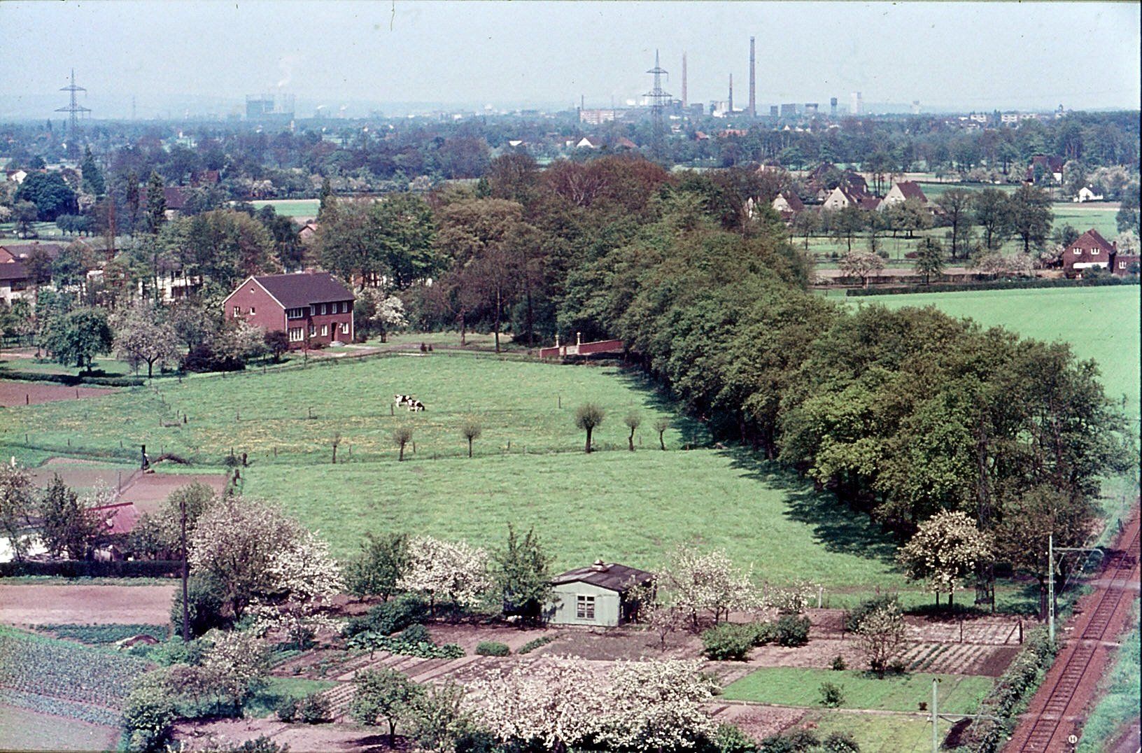 Bevor 1880 die Straße nach Marl gebaut wurde, befanden sich hier Äcker und Wiesen. Als an der rechten Straßenseite nach Marl Häuser gebaut wurden, legte man an der linken Seite eine größere Gartenanlage an. Etwa sieben Familien hatten hier ihren Hausgarten.