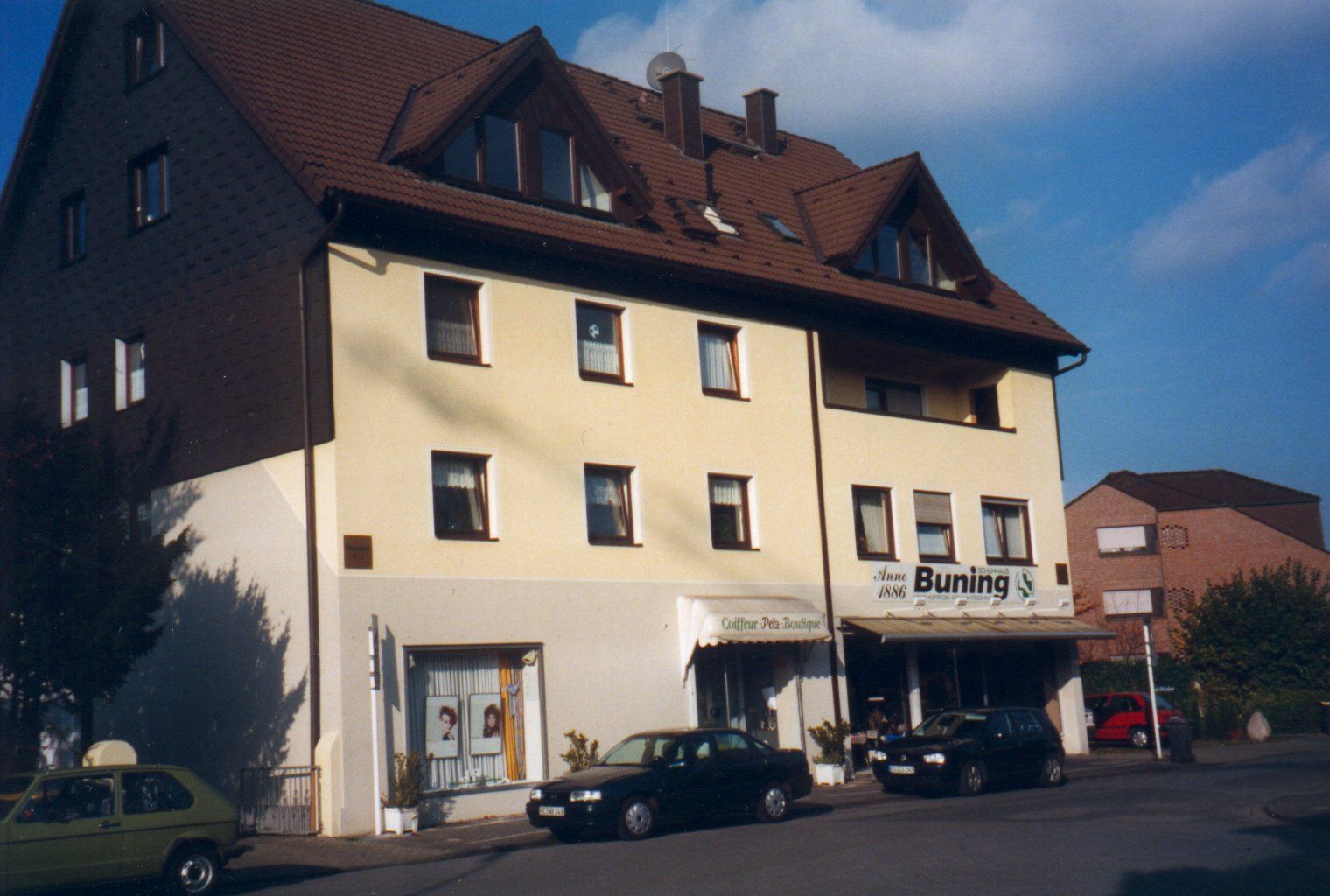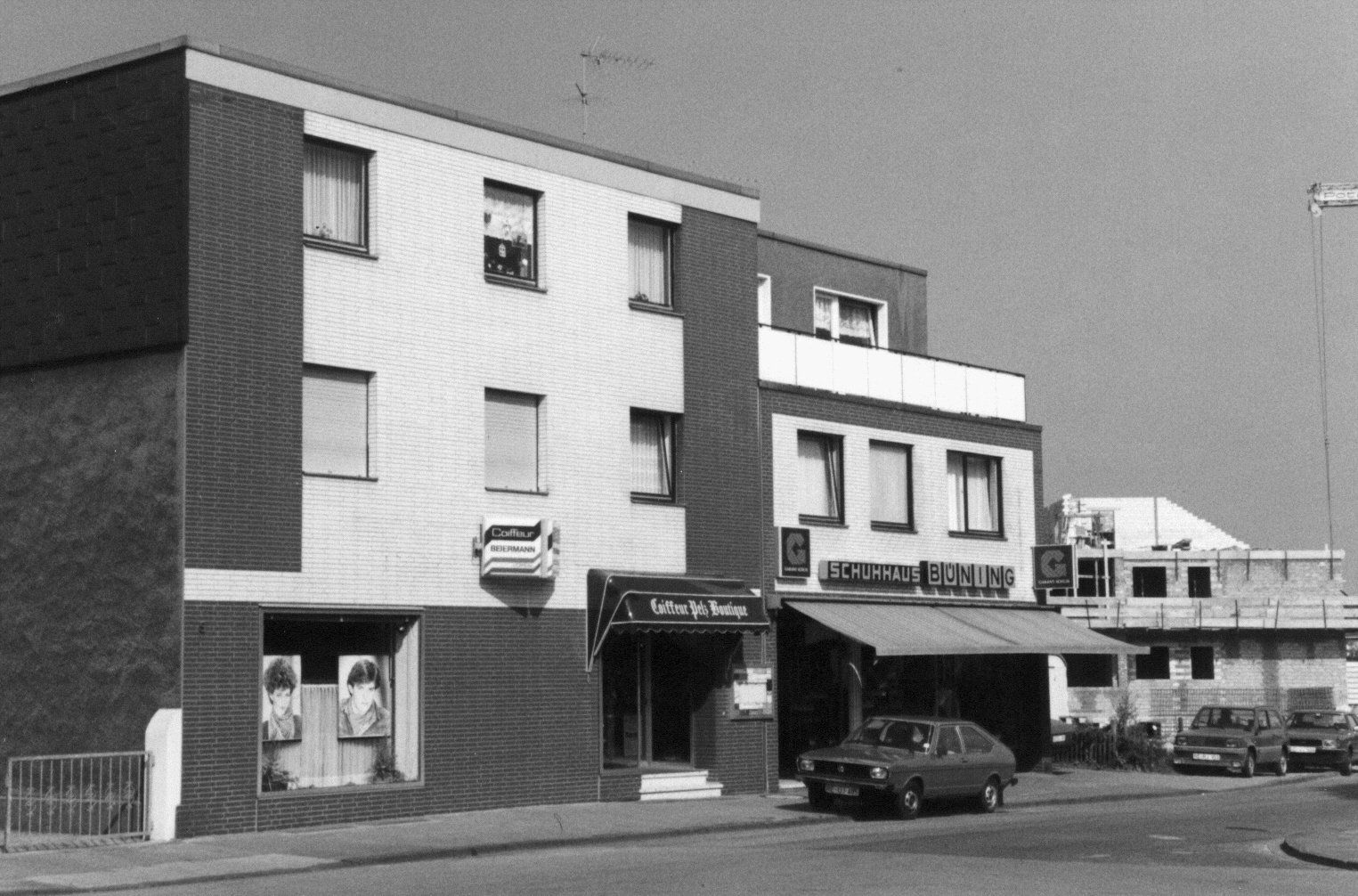 Seit Jahrzehnten ist dieses Haus als „Schuhhaus Büning“ bekannt. Gebaut wurde es 1910/12 durch Johann Büning. Im rechten Teil war das Schuhgeschäft von Büning, im linken Teil ab 1912 das Textilgeschäft von Wilhelm Feldmann untergebracht. Nach dessen Auszug 1953 zog die Drogerie Krawinkel ein, die 1963 zum Hammkamp 2 umzog.