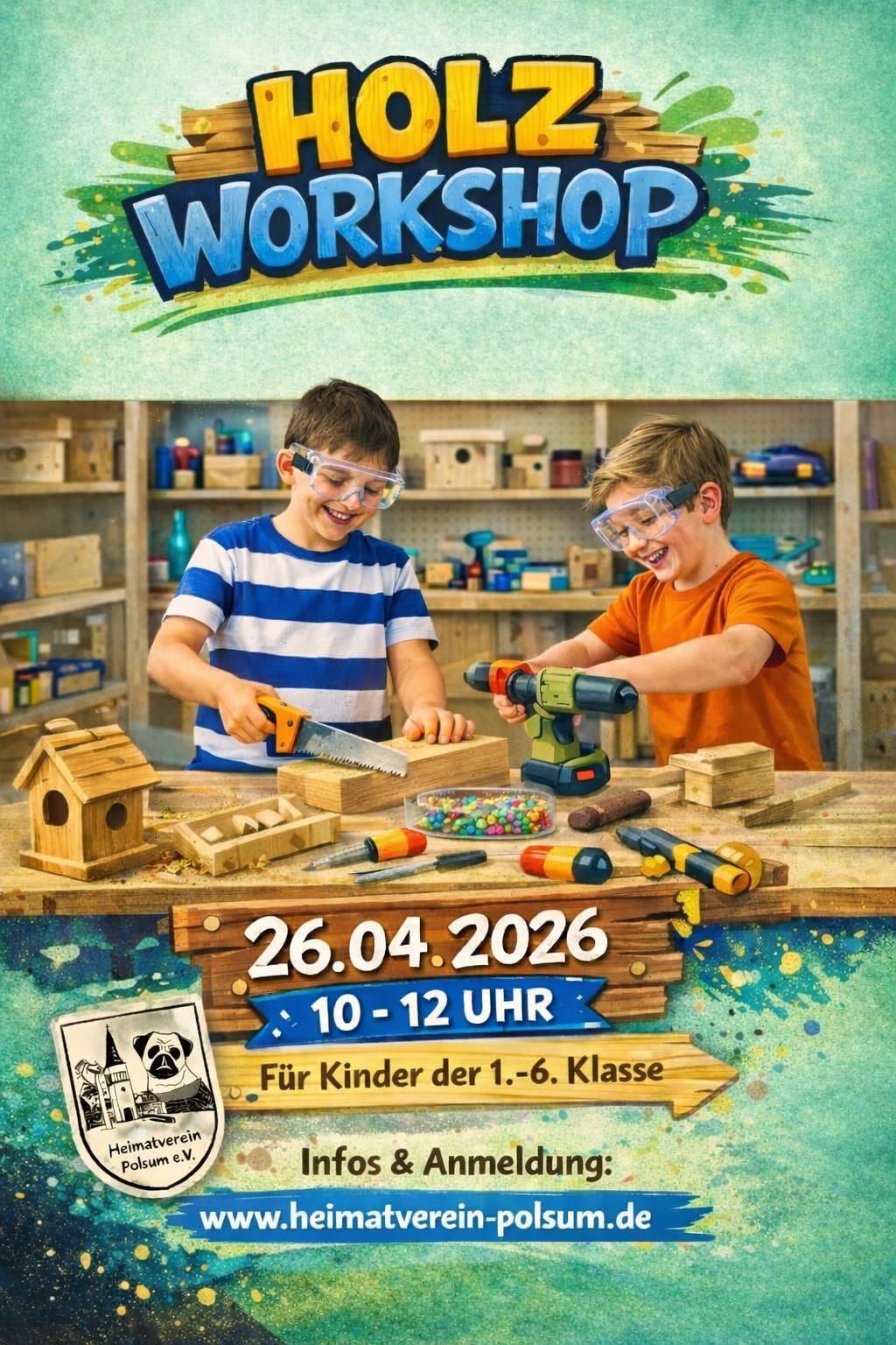 Wir freuen uns sehr, dass Michael Erwig dieses Jahr extra für uns auch wieder einen Holz-Workshop anbietet. ☺️ Wir wollen diesen Kurs als Schnupperkurs für die Kinder unseres Heimatvereins aus der 1.-6. Klasse anbieten, die noch nie bei Michael in einem Workshop waren. Wir gewähren euch einen Mitgliederrabatt von 5€, sodass der Kurs nur 20€ statt 25€ kostet. In dem Kurs werdet ihr ein tolles Geschenk zum Muttertag basteln ☺️ Material ist inklusive. Anmeldeschluss ist der 12.04.2026 Hier könnt ihr euch anmelden oder klickt auf das Bild,