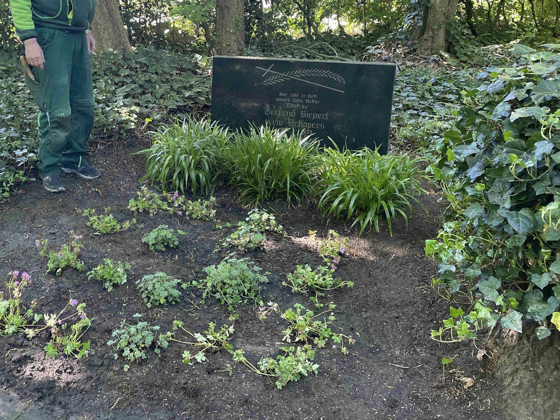 Ab und zu berichten wir von den Grünen Möppeln, die ja regelmäßig im Dorf aktiv sind. Ende April haben sie erneut auf dem Alten Friedhof Hand angelegt und zwei Gräber neu bepflanzt. Die bisherige Bepflanzung war deutlich in die Jahre gekommen und wurde daher vollständig ausgetauscht.