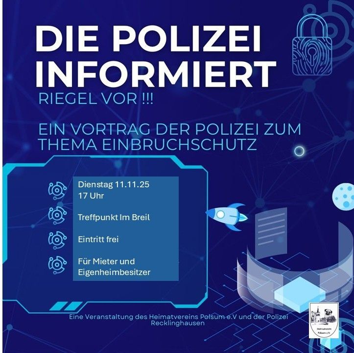 Alle Mieter und Eigenheimbesitzer sind herzlich eingeladen. Es informiert euch die Polizei.